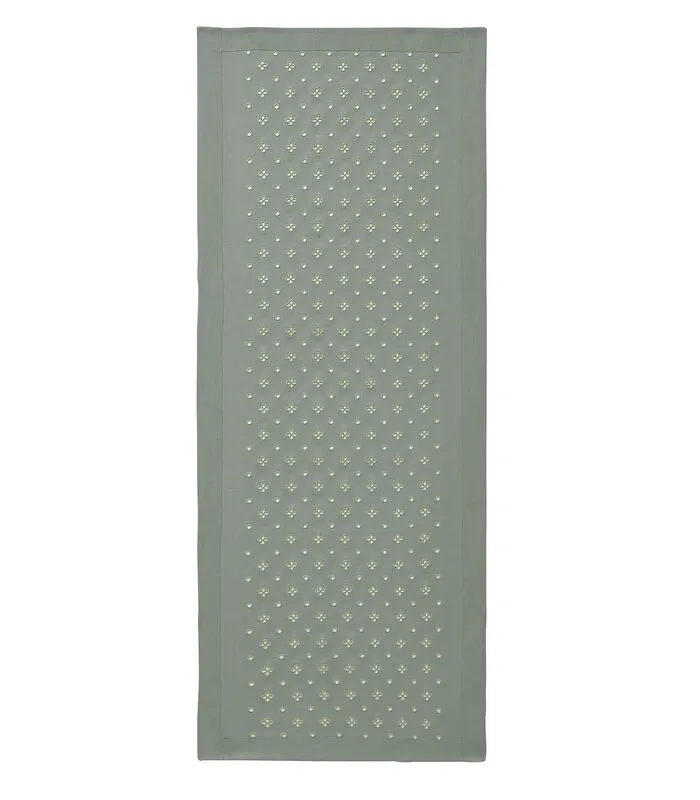 100% linnen geweven en geborduurd in Frankrijk. Tafelloper met recht afgewerkte hoeken en vlekwerende Teflonâfinish.