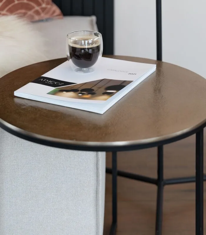 Zoals de naam al doet vermoeden, zijn de bijzettafeltjes Thor stoer. Dit duo blinkt uit in de combinatie van een sterke stoere look met een luxueuse uitstraling. Het zwart metalen frame is zo ontworpen dat de tafeltjes mooi in elkaar schuiven. Het blad heeft een ruw antiek bronzen finish en straalt je tegemoet. Combineert mooi met groene planten, rijke kleuren of gewoon als contrast in je hedendaags en modern intertieur.