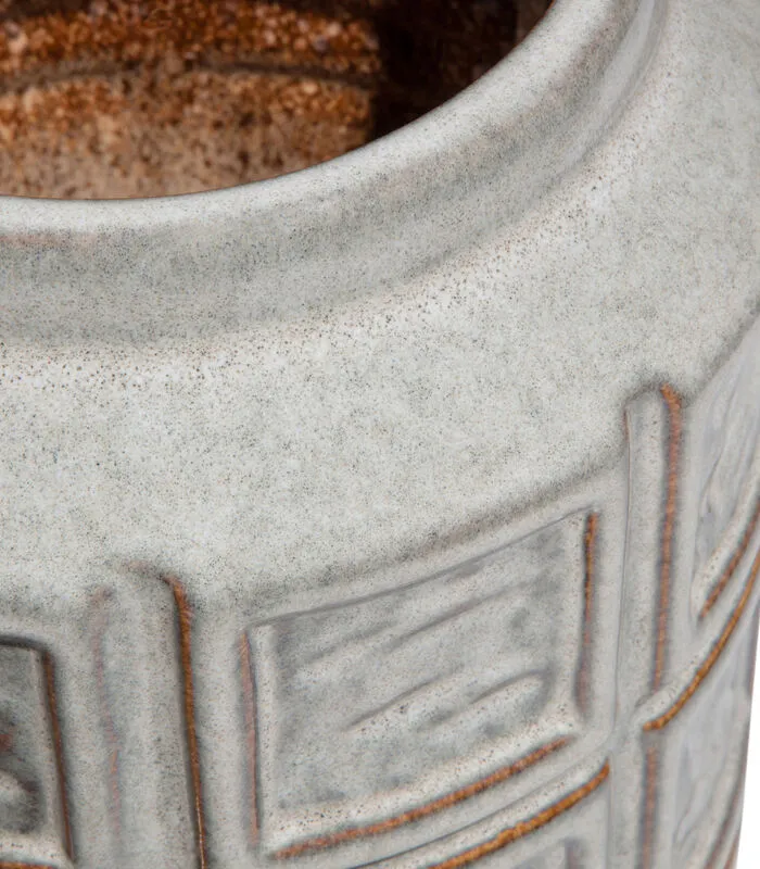 Keramiek wordt gevormd uit geboetseerde, afgebakken klei. De keramieken items uit onze collecties worden met een matte of glanzende laag geglazuurd, dit zorgt voor een opvallend uiterlijk en een extra bescherming van het materiaal. Onze keramieken items zijn geschikt voor indoor en outdoor, maar zijn niet bestand tegen harde regenval en vorst. Keramiek is uiterst hittebestendig maar kan bij een ruige omgang redelijk poreus zijn, een zorgzame onderhoud is daarom aangeraden.