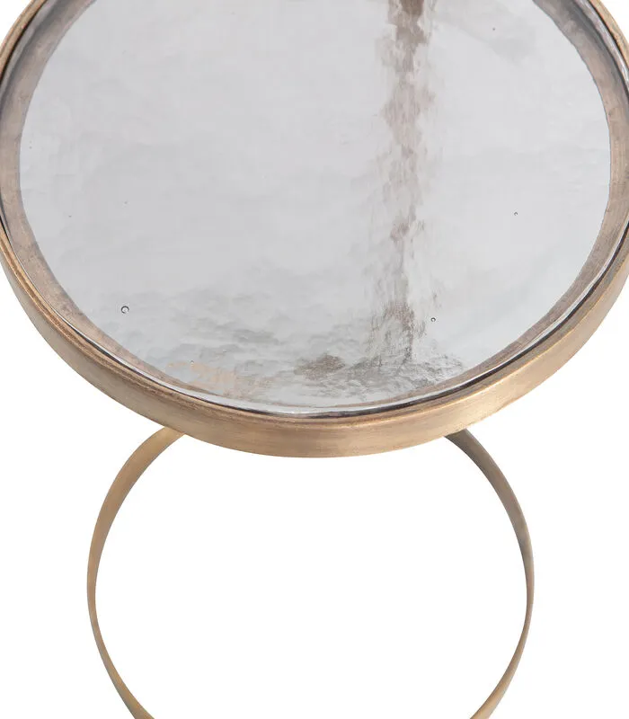De Cool bijzettafel, uit de collectie van het Nederlandse interieurmerk BePureHome, is een handige bijzetter met een chique uitstraling. Het goudkleurige metaal omrand een transparante glazen blad met een indrukwekkende structuur. Dit maakt Cool een charmant en opvallend item. Gebruik Cool als handig tafeltje bij de bank of als sprankelende plantentafel.