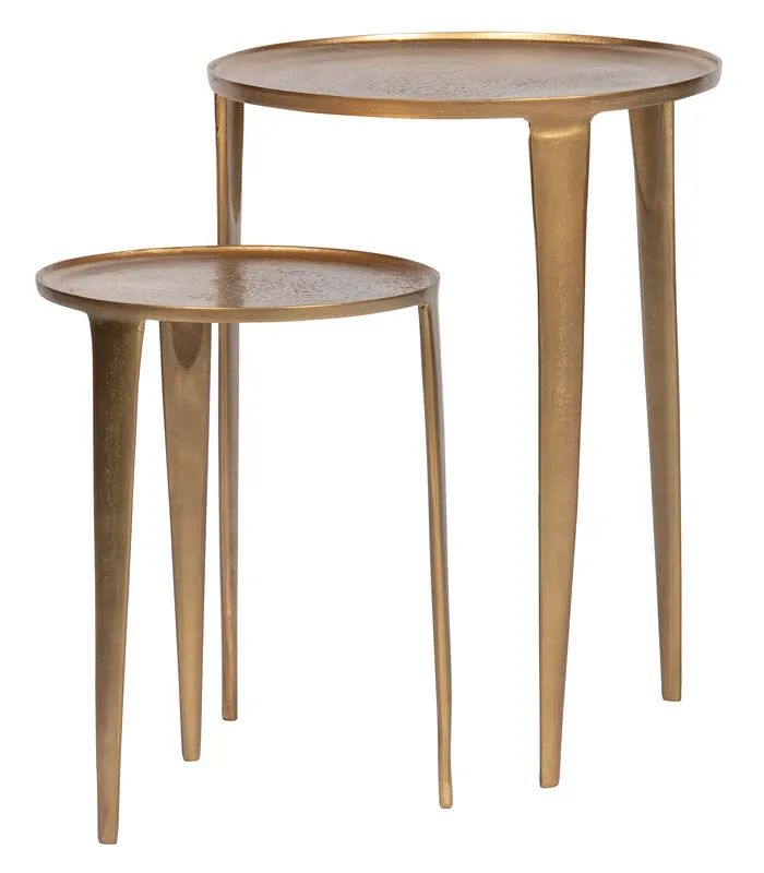 Set van 2 bijzettafels Medaillon komen uit de collectie van het Nederlandse merk BePureHome. De tafels zijn vervaardigd uit aluminium met een antique brass finish. Door het materiaal zijn de bijzettafels lichtgewicht en makkelijk te verplaatsen.