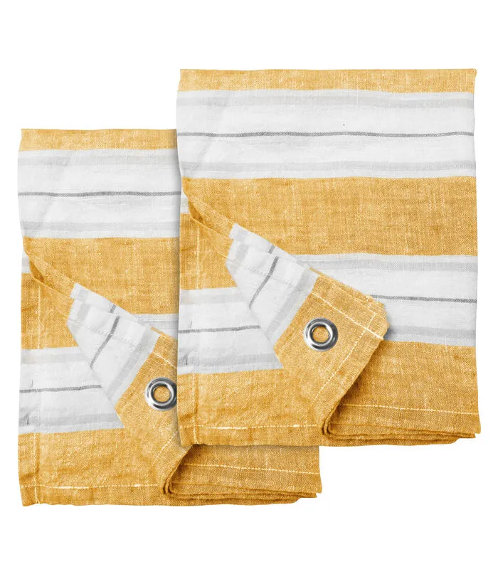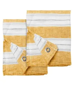 Ontdek de set van twee theedoeken Set strepen 100% Frans linnen. U zult genieten van de kleurrijke geweven strepen die een frisse en trendy stijl geven. Metalen oogje. Set van 2 theedoeken: saffraan.