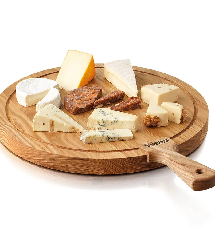 Steel de show op je feest of borrel met de Serveerplank Rond Friends L van BOSKA. Deze stijlvolle plank van Europees eikenhout heeft een diameter van maar liefst 40 cm. Dit biedt genoeg ruimte voor het serveren van al je favoriete kaas en tapas. Waar ga j
