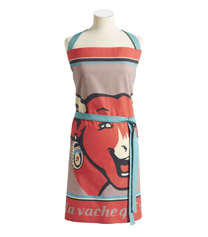 Dit schort Vachement Bon is het resultaat van de samenwerking tussen La Vache Qui Rit en Coucke. Op dit schort in een fris dynamisch en kleurig thema prijkt het logo van La Vache Qui Rit in zijn traditionele kleuren: rood, wit en blauw.