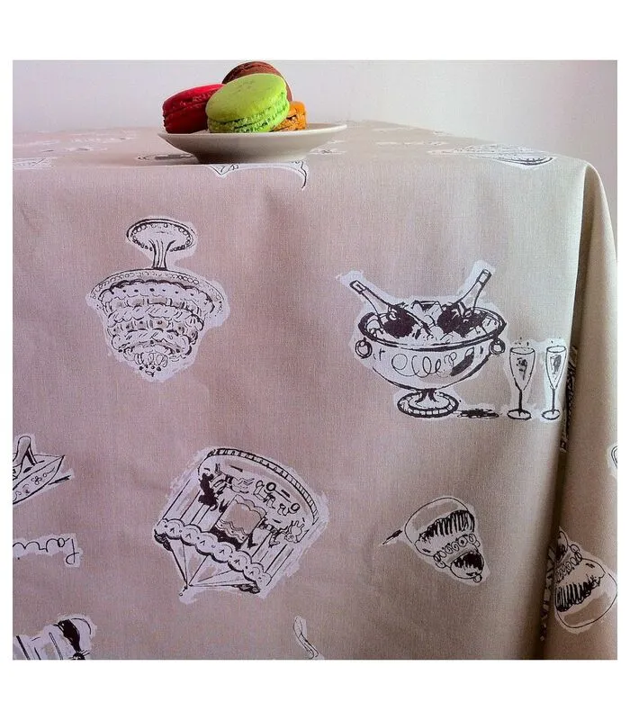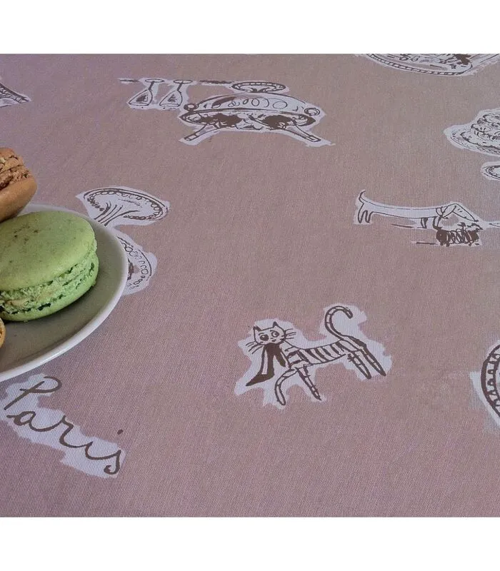 Fleur De Soleil Paris Taupe Rond Of Ovaal Gecoat Tafelkleed