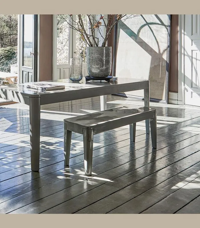 De kracht van de Molon bank ligt in zijn eenvoudige maar sculpturale uiterlijk. Het stevige mangohout heeft een grijze verflaag en een glanzende laklaag gekregen. Wanneer het licht op het oppervlak valt, creëert deze bank een extra dimensie in uw woonkamer. Plaats Molon in uw hal of woonkamer als extra bankje of als decoratief element met vazen. De mogelijkheden zijn eindeloos met dit duurzame en langdurige ontwerp. Met zijn eigentijdse look en kleur is de bank een constante metgezel in veranderende interieurstijlen.