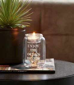 Rivièra Maison Waxinelichthouder Glas, Theelichthouder Met Koraal – Coral – Beige