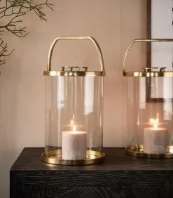 Rivièra Maison Lantaarn, Windlicht, Kaarsenhouder – Webbing – Bruin