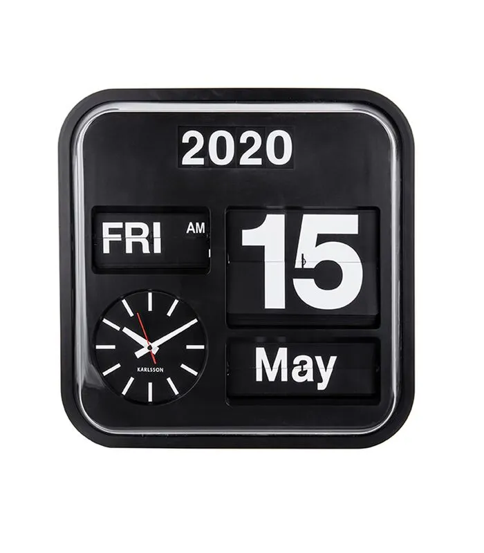Karlsson Wandklok Big Flip – Zwart – 43x43x16cm