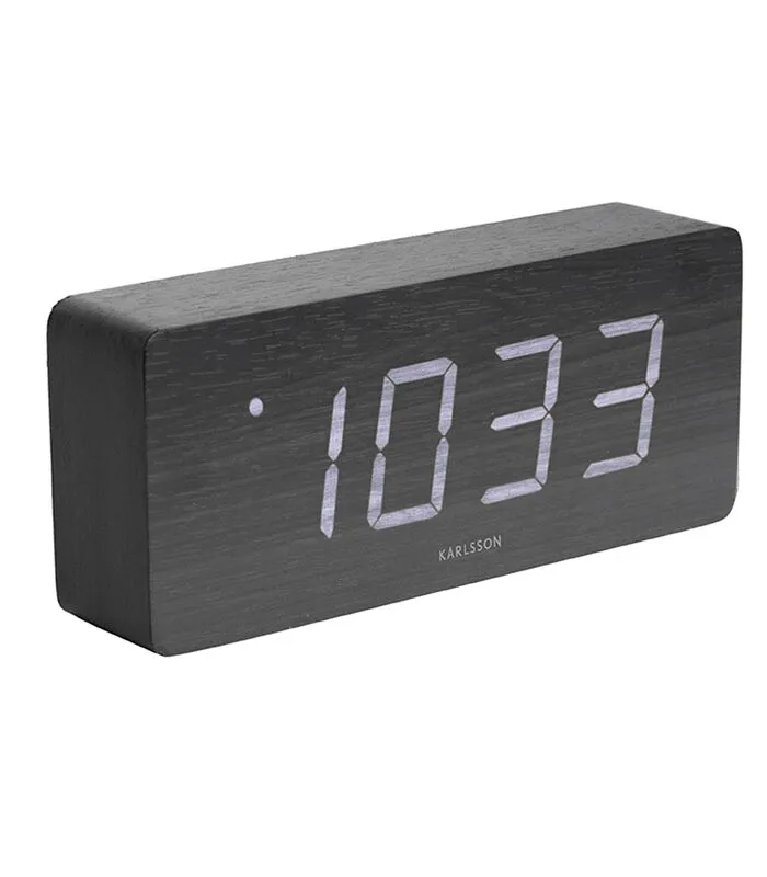 Karlsson Wekker Tube – Zwart Fineer, Wit LED – 21x9x4,5cm