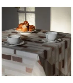 Fleur De Soleil Rond Of Ovaal Gecoat Tafelkleed Stripe Patch Taupe