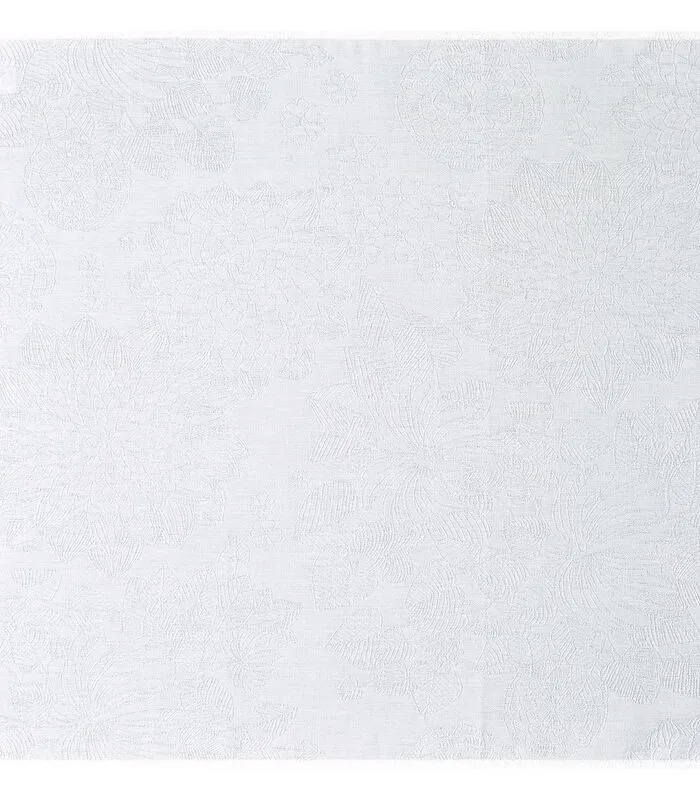 Welkom op de Marie Galante archipel in de Caribische Zee. De overvloed aan dahlia, kamperfoelie, zinnia en kleine geraniumbloemen in reliëf doet denken aan de geur van vakantie in een delicate toon op toon.