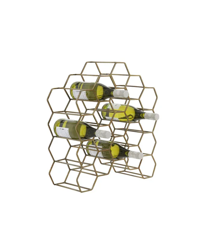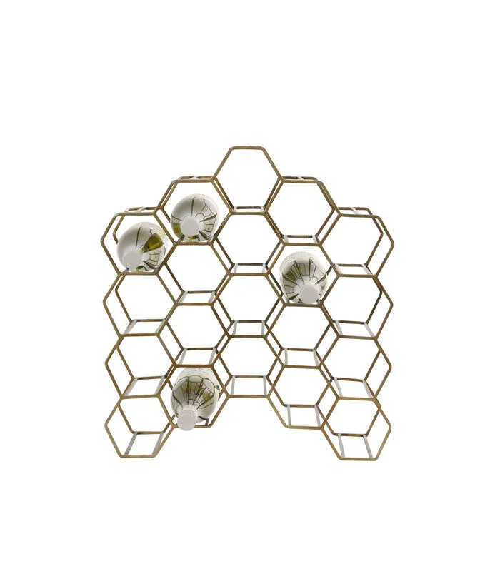 Hoe luxe is het om je wijnflessen op te bergen in een chique wijnrek? Dit Salbris wijnrek is daar perfect voor geschikt. Door de honingraatvorm passen er wel 12 flessen in het rek. Het wijnrek is gemaakt van metaal en heeft een bronzen kleur met een robuuste afwerking. De afmetingen van het rek zijn 30x18x46 cm. Je kan het rek neerzetten op de vloer of gezellig op de tafel en past perfect in een modern en luxe intrieur. Dit is een product van het Nederlandse merk Light & Living.