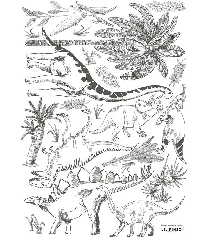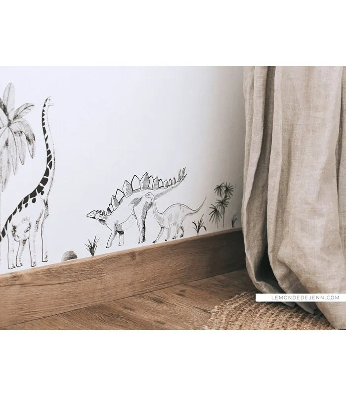Voor echt dino gekken! Prachtige muurstickers met stoere dino’s en planten en bomen.Mooi tijdloos door het zwart en wit. Wat zal dat prachtig staan in de kinderkamers.