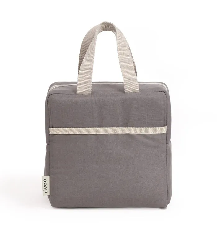 Koeltas. Waterafstotend katoenmateriaal. Aluminium voering. Ritssluiting. Herbruikbaar. Ideaal voor uw warme of koude maaltijden. Formaat: 20 x 20 x 12 cm.