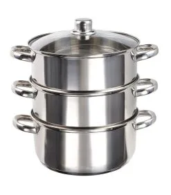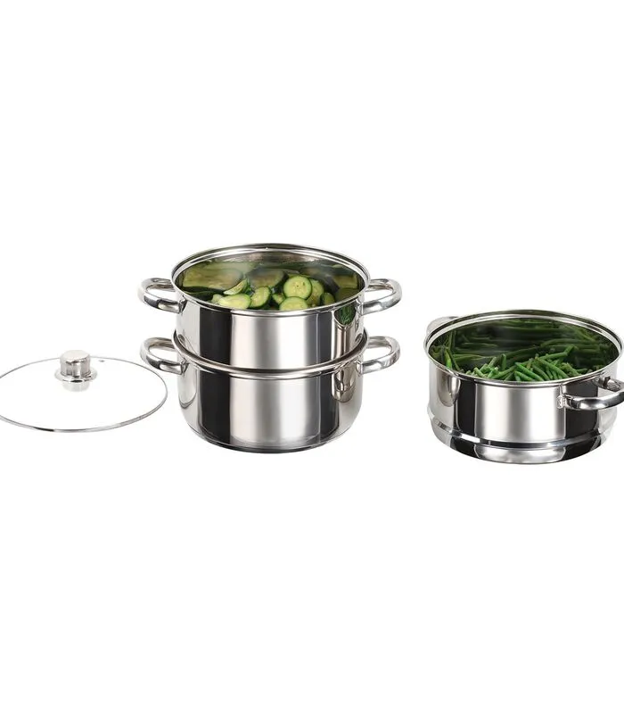 Stoompot. Roestvrijstaal 24 cm. Pot 4 L. 2 stomers 3 l en deksel. Hittebestendige geschikt. Voor alle soorten fornuis met inbegrip van inductie.