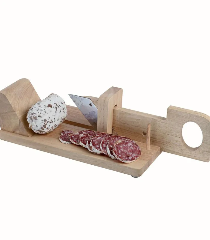 Worstsnijder. Voor het in stukken snijden van worst. Eenvoudig te snijden dankzij de handgreep. Gemaakt met rubberen hout. Ideaal voor uw feesten.