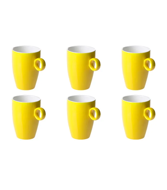 Serveer je koffie of andere warme drank eens op een andere manier met deze prachtige gele Bart Colors Café bekers van Maastricht Porselein. Het kleine ronde oor zorgt ervoor dat de bekers stevig in je hand liggen. Daarnaast zijn de bekers nestbaar. Het hoogwaardige porselein is kleurvast en zal niet vervagen na veelvuldig reinigen in de vaatwasmachine. Bestand tegen stoten en met een inhoudsmaat van 23 cl zijn dit dé perfecte bekers! Deze set bestaat uit 6 gele bekers met een inhoudsmaat van 23 cl.