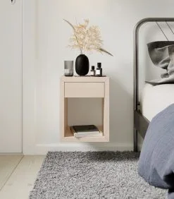 WOODEK 2 X Zwevend Nachtkastje HUGO Met Kleine Lade In Berkenhout