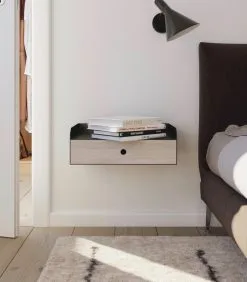 WOODEK 2 X Zwevend Nachtkastje HUGO Met Kleine Lade In Berkenhout