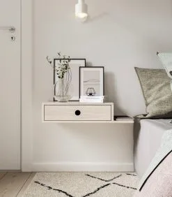 WOODEK 2 X Zwevend Nachtkastje HUGO Met Lade In Berkenhout