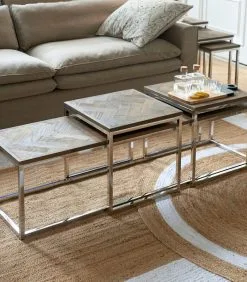 Rivièra Maison Salontafel Hout – Bushwick Table – Set Van 3 Stuks – Zilver