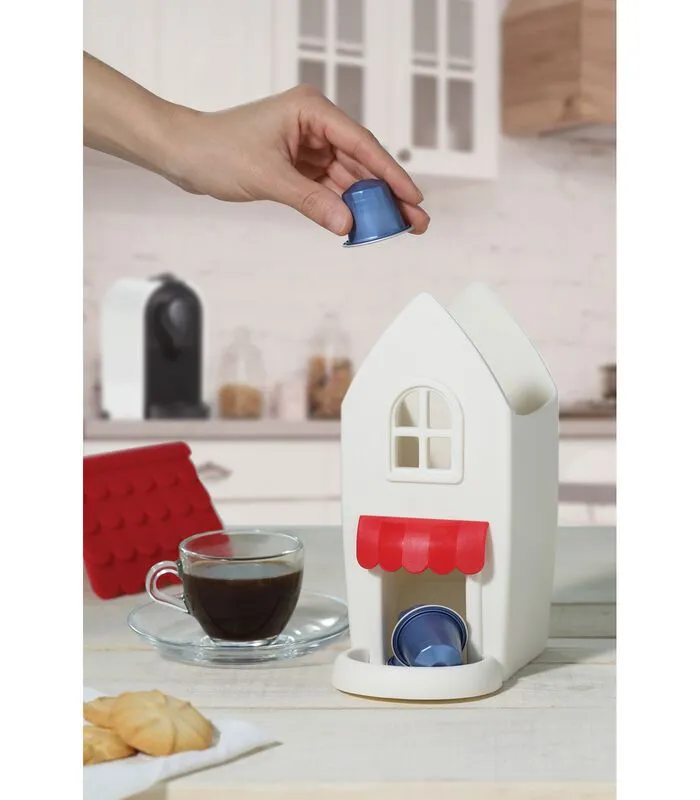 De koffiecapsule dispenser van Ototo is niet alleen erg handig maar is ook nog eens vormgegeven als je eigen koffiezaak. Haal het dak van de Coffee Shop, vul hem met je favoriete capsules en geniet snel en leuk van een lekker bakje koffie.