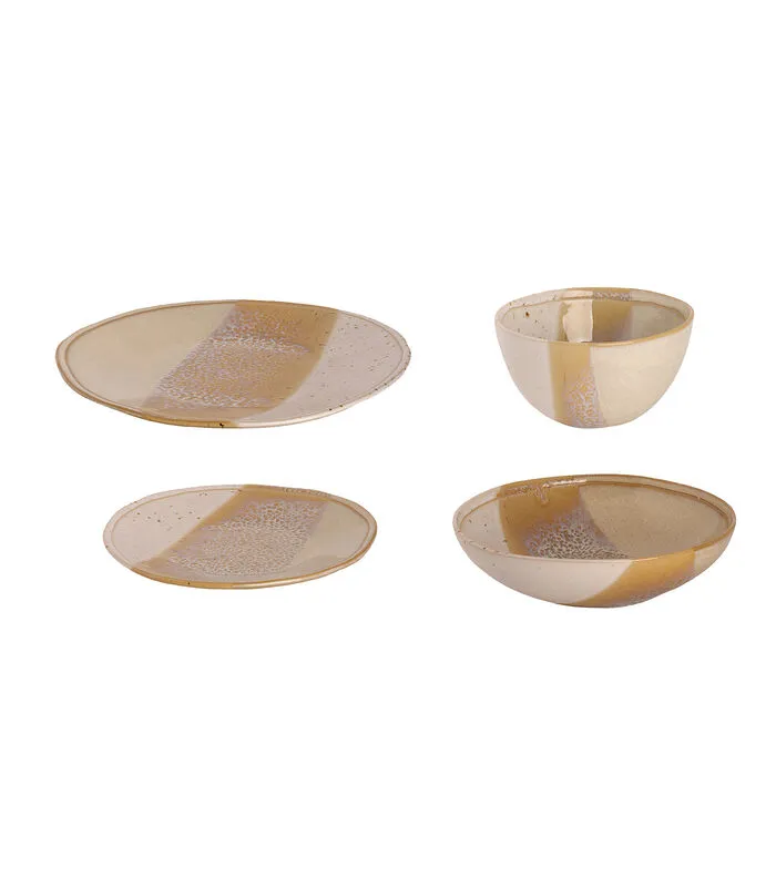 Het pure kleurenpalet en eenvoudige patroon van deze handgemaakte collectie voert je mee naar de bijzondere sfeer van een Zen–tuin of een verlaten strand. Laat je verleiden om achterover te leunen en te genieten van het moment. Design je eigen culinaire reis met deze unieke lijn. Elk stuk uit onze Beach–collectie is vervaardigd door Europa’s beste keramische specialisten. Onze lijn bestaat uit twee borden en twee kommen die bestand zijn tegen veelgebruikte keukenapparatuur. Elk serviesstuk is met de hand afgewerkt en voorzien van een honingzacht glazuur in het hart van elk stuk.