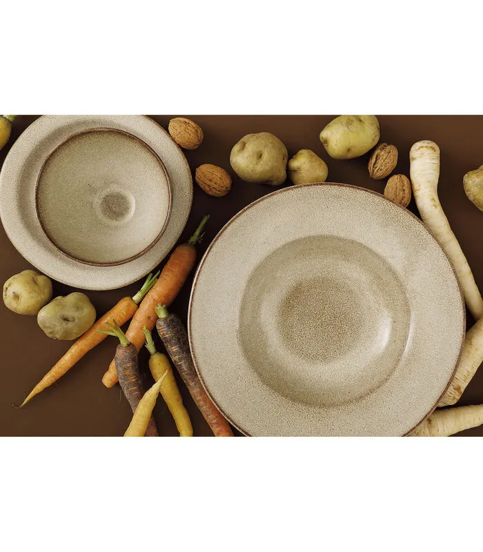 De Earth–collectie doet denken aan het einde van de zomer, genietend van de vruchten van een overvloedige oogst. De zachte, organische vormen van het fluweelzachte aardewerk zijn afgewerkt met een licht gestippeld patroon van warm bruin glazuur. Het laat ons genieten van elk moment, alsof het de laatste dagen van de zomer zijn. Elk stuk in deze Earth–collectie is one–of–a–kind. Europa’s beste keramisch specialisten ontfermen zich keer op keer met veel passie over ons servies. De robuuste, aardewerken collectie bestaat uit twee borden en twee kommen, die geschikt zijn voor dagelijks gebruik.