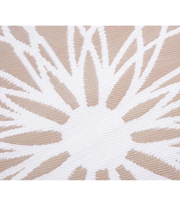 Tapijten enkel voor binnenshuis? Niets is minder waar! Zo kun je jouw terras, balkon of tuinhuisje voorzien van een buitentapijt, dit kan met het ‘outdoor tapijt Fairytale’. Dit ronde kleed heeft een bruine kleur met een mandala patroon en is gemaakt van polypropyleen. Polypropyleen voelt een beetje als kunstof en heeft een neutrale afwerking. Dit materiaal is waterbestendig en daarom geschikt voor buiten. Het vloerkleed kun je op beide kanten neerleggen, een bruin kleed met witte accenten of juist net andersom, een wit kleed met bruine accenten. De afmetingen van dit tapijt zijn Ø150 cm. Door het patroon in het vloerkleed krijgt je ruimte een moderne Bohemian uitstraling. Een outdoor tapijt staat minstens even gezellig als het vloerkleed dat je binnen in huis hebt liggen!