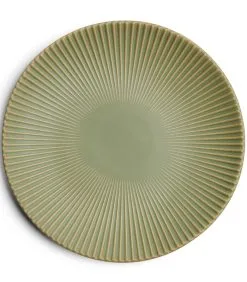De Marseille Breakfast Plate green heeft een prachtig ribmotief dat de koffiekoppen niet hebben. Het ontbijtbordje is groen, maar de zandkleur van de serviesserie schemert door in de ribbels. Een feest om daarmee wakker te worden.