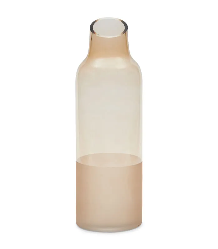 Door het glas van deze Desert Sand–vaas te zandstralen, heeft het glas een bijzondere zandkleur. De smalle hals van de vaas is schuin afgesneden en hierdoor kun je de dikte van het glas goed zien. Door zijn hoogte en smalle hals, leent deze vaas zich goed om een enkele bloem met een lange steel in te plaatsen.