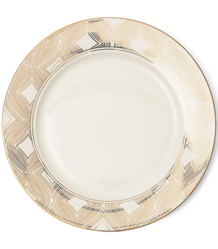 Een etentje thuis met Le Relais Dinner Plates op tafel geeft direct een feestelijke sfeer. En niet alleen tijdens de feestmaand. Het bord hoort thuis in het Le Relais servies en glaswerk. Met de kenmerkende gouden bies langs de rand, in streep– en stippelpatroon.