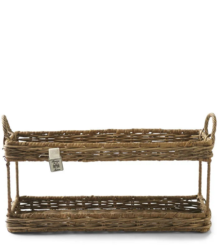 Dubbel dienblad van pitriet. Pitriet is een natuurproduct dat door een natuurlijk procedé wordt gekleurd. Ieder product is hierdoor uniek. Verkrijgbaar in maat S en L.