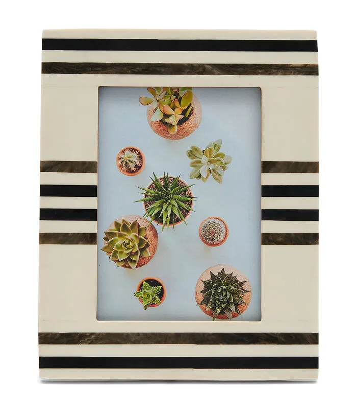 Het Hotel Chic Photo Frame M is een middelgrote fotolijst voor foto’s met een afmeting van 13 x 18 centimeter. De lichte lijst is gedecoreerd met donkere strepen en strepen met marmereffect. De fotolijst is ook verkrijgbaar in een andere, bijpassende variant.