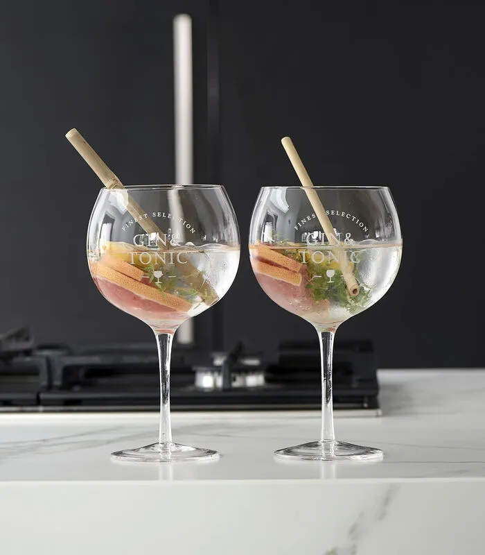 Liefhebbers van gin & tonic, of G&T zoals de Engelsen zeggen, prefereren tegenwoordig een bol glas om hun mix uit te drinken. Op een poot, wel te verstaan. Longdrink glazen zijn uit, voor dit drankje. Dit Finest Selection glas is daar helemaal goed voor. Prachtig glas, bol en met een sierlijke inscriptie. Er wordt dit glas met de hand af te wassen.
