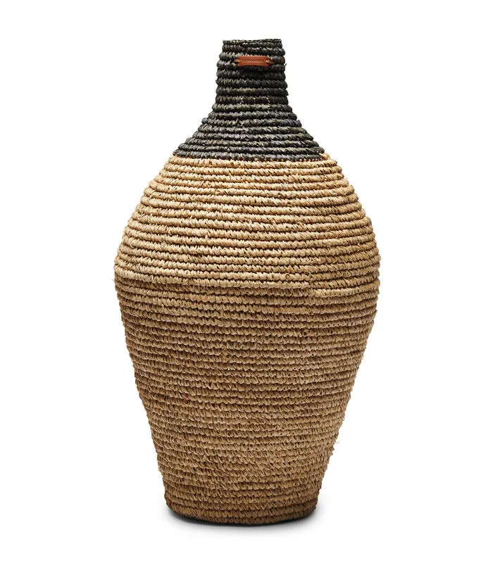 De RM Sisal Vase black is handgemaakt van honderd procent sisal. Een sieraad in de kamer, naturelkleurig, met het bovenste gedeelte in zwart. De vaas op zichzelf is opvallend, met een paar grote pluimen of droge takken erin, trekt hij echt de aandacht.