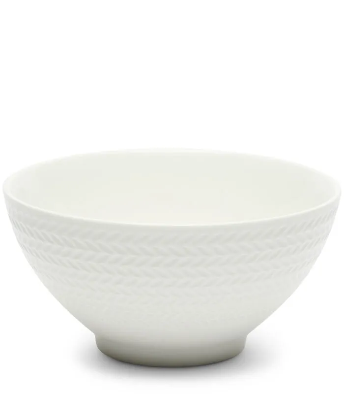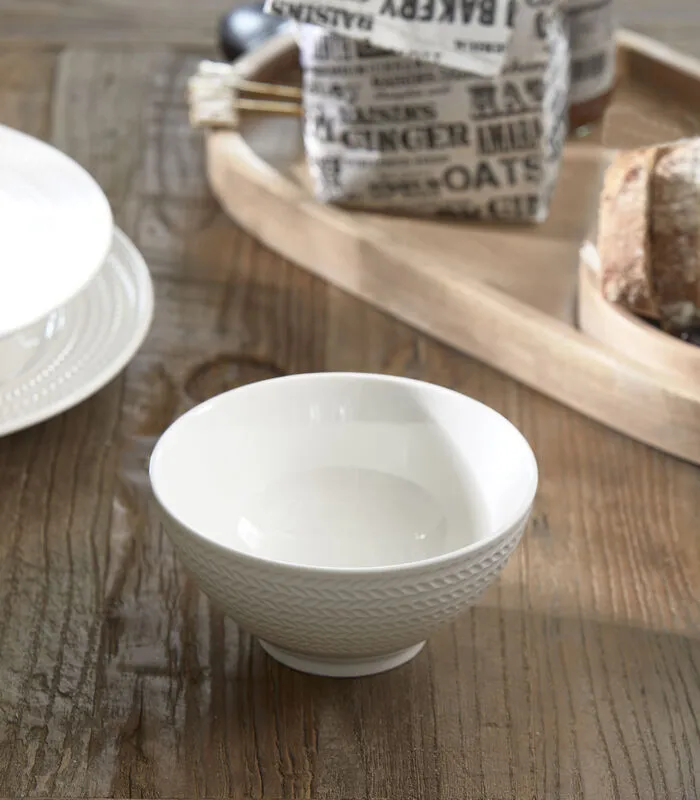 Het schaaltje uit de RM Bellecôte serviesserie kun je gebruiken voor je ontbijtgranen, voor soep of om iets lekkers in te doen. Voorzien van de mooie gevlochten sierrand in visgraatpatroon is het schaaltje een feest voor het oog.