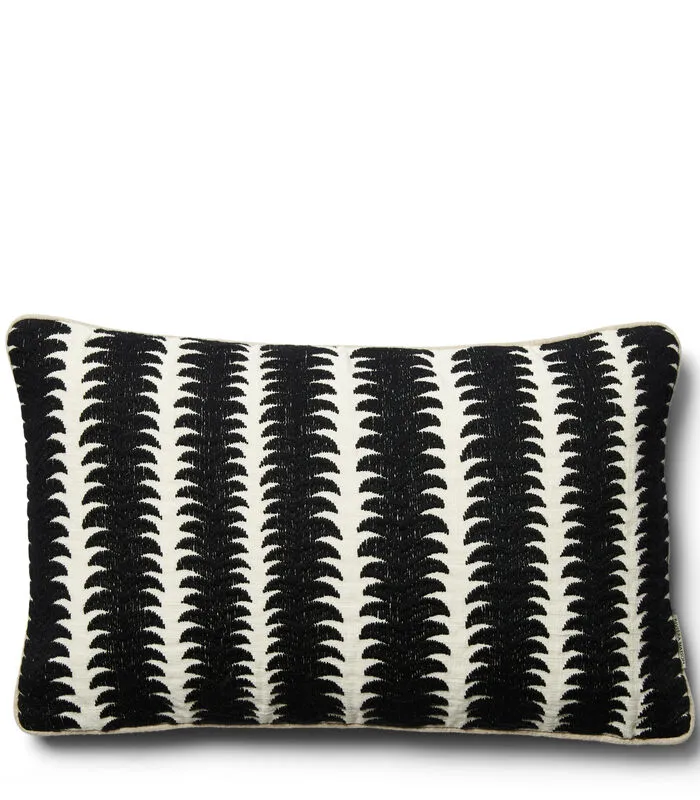 De RM Salinas Pillow Cover 50×30 is een kussenhoes met een grafisch patroon in zwart en wit. De achterkant is effen beige. Ook de ronde piping is beige van kleur. De stof van de kussenhoes is gemaakt van een mix van katoen en linnen. Dit geeft de hoes een verfijnde en luxe uitstraling.