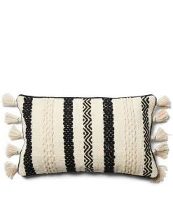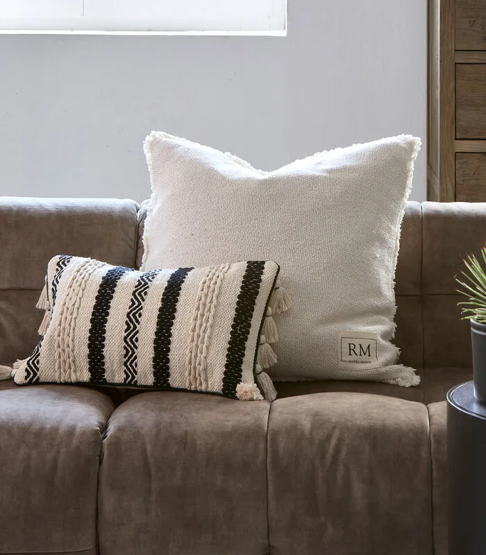Rivièra Maison Kussenhoes, Kussensloop 50×50, Kwastjes – Ko Olina – Zwart/ Wit