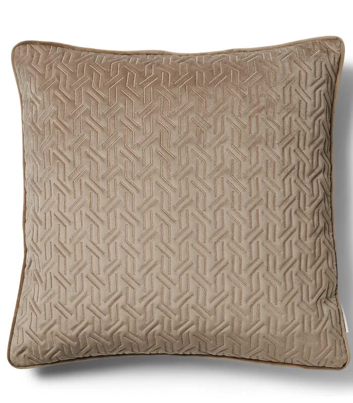 Neutraal en veelzijdig, maar met een chique uitstraling, dan hebben we het over kussenhoes RM Corben. Deze kussenhoes van 50×50 cm heeft een bruinachtige taupetint en is gemaakt van velours. In dit zijdezachte materiaal is met gouddraad een verfijnd grafisch patroon aangebracht. Let op: binnenkussen niet meegeleverd.