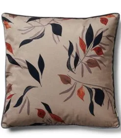 De Fall Leafâkussenhoes is een zachte kussenhoes van velvet, waarop aan beide zijden een patroon van bladeren in verschillende kleuren is geprint. Rondom de kussenhoes loopt een ronde, blauwgrijze bies, waarachter ook de rits is weggewerkt. Exclusief binnenkussen.