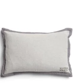 De RM Flori–kussenhoes in lichtgrijs is een stijlvolle kussenhoes zonder al te veel poespas. Rondom het kussen loopt een platte, donkergrijze bies en in de hoek rechtsonder is de Rivièra Maison–branding in een vergelijkbare donkere teint geborduurd. Aan de achterzijde kleurt de bies mee met de rest van het lichtgrijze kussen. Exclusief binnenkussen.