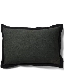 Op de rechthoekige, donkergrijze RM Flori–kussenhoes is in de rechterhoek aan de onderkant de Rivièra Maison–branding in geborduurde letters aangebracht. De platte, brede bies is aan de voorkant van het katoenen kussen zwart, terwijl de kleur van de bies aan de achterkant van de kussenhoes overeenkomt met de grijze kleur van de rest van de hoes. Exclusief binnenkussen.