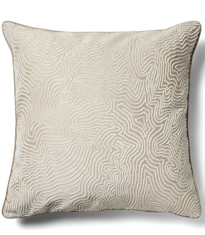 Deze naturel getinte kussensloop heeft een organische print aan de voorkant. De achterkant van het kussen heeft een velvet structuur. Dit kussen wordt verkocht zonder binnenkussen.