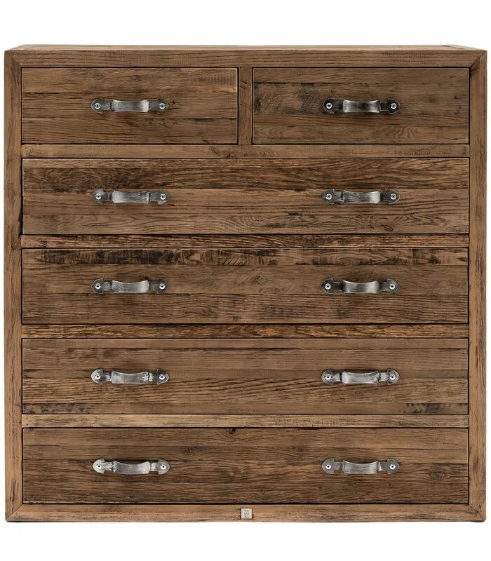 Met de woorden stoer en robuust omschrijf je de Connaught XL–ladenkast het best. Want deze grote ladenkast is gemaakt van oud eikenhout. Door de speciale bewerking van het meubel in de ateliers van Rivièra Maison, wordt de doorleefde uitstraling van het hout benadrukt. Voeg hier handgrepen van rvs met een geborstelde finish aan toe en je hebt een blikvanger voor iedere ruimte.