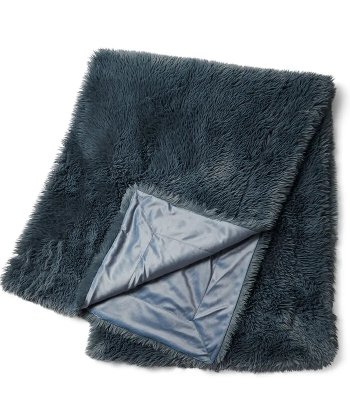 De Fall Faux Fur Throw blue is een groot en warm plaid van namaakbont. De enorm zachte plaid van 170 x 130 centimeter heeft een donkere, ijsblauwe tint. Hierdoor krijgt de fluffy plaid ook een stoere uitstraling. De achterkant is van blauw velvet.