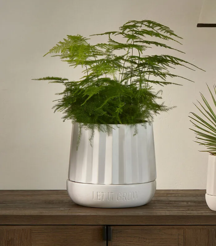 Mooie witte bloempot, deze RM Let it Grow Planter L. Zet er een mooie plant in en je kamer fleurt er helemaal van op. Handig: bloempot en schotel kunnen van elkaar worden gescheiden. Het potgedeelte heeft leuke ribbels, dat staat heel levendig.