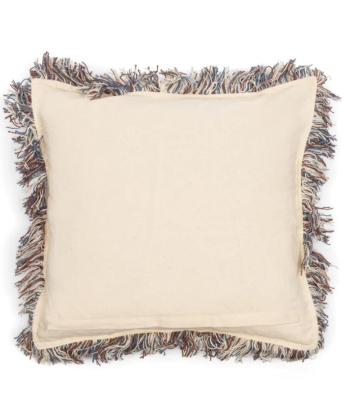 Doordat in deze kussenhoes verschillende kleuren zijn verweven tot een geheel, past het kussen in bijna ieder interieur. Langs alle zijden is het vierkante kussen met sierlijke ruches afgewerkt. Aan de achterkant is het kussen egaal wit. Exclusief binnenkussen.