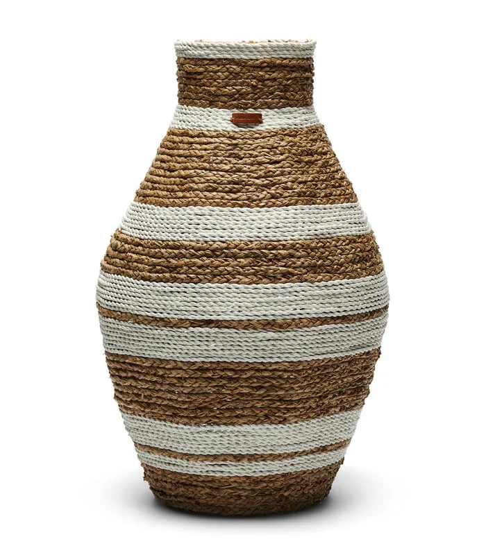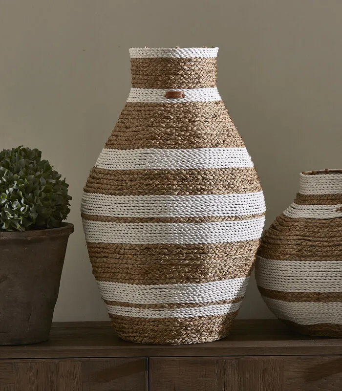 Rivièra Maison Rieten Vaas, Rond Met Streep – Emelisse – Bruin / Wit – Maat L